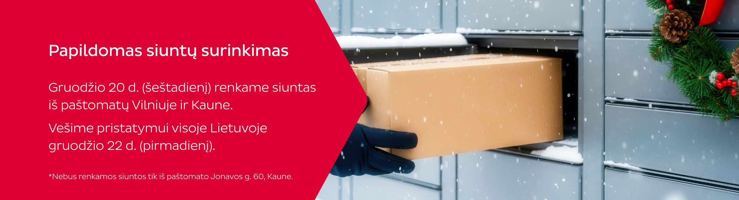 Lietuvoje siuntos pristatomos per 1 d. d. skaičiuojant nuo tos dienos, kai kurjeris paima siuntą iš paštomato arba iš Jūsų nurodyto adreso.